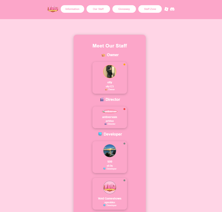 Void GameShows required a dedicated platform to support a growing Roblox-based community. The project needed to go beyond a standard website, acting as an operational hub for giveaways, staff management, and public transparency.